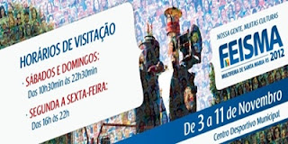 Cmoeçou ontem e vai até dia 11 de novembro , a 27ª FEISMA, a Multifeira de Santa Maria, que tem como tema central NOSSA GENTE, MUITAS CULTURAS.